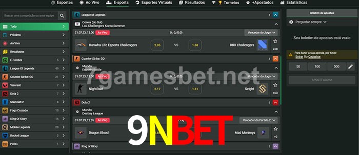O 9Nbet oferece uma grande seleção de opções de apostas em e-sports com probabilidades competitivas